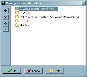You can customise the favourite folder list by clicking 'Manage Favourite Folder List' at the bottom of the displayed menu, to display the Manage Favourite Folders Dialogue (see below).