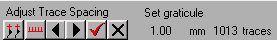 The calibration tool bar contains controls for setting and adjusting the trace and time calibration of the seismic image.While calibrating, the trace or time position can be edited using the controls in the cursor location display on the top right af the main window.