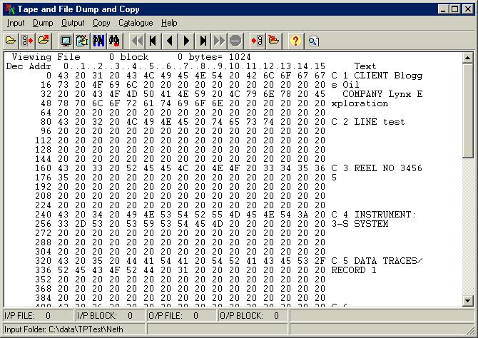 The screen shot below is of a TapeFile dump of a Lynx format seismic trace file.